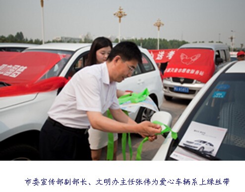 6月5日上午,以“做文明人,為莘莘學(xué)子播撒愛(ài)心;辦文明事,讓鶴城大地綻放異彩”為主題的鶴壁市2014“愛(ài)心送考”志愿服務(wù)行動(dòng)啟動(dòng)儀式在市文化藝術(shù)中心廣場(chǎng)舉行。這是該市連續(xù)第8年組織“愛(ài)心送考”活動(dòng),愛(ài)心駕駛員志愿者將在6月7日、8日為持有準(zhǔn)考證的高考學(xué)生無(wú)償提供送考服務(wù)。啟動(dòng)儀式上,由出租車(chē)、公交車(chē)和私家車(chē)等組成的六百多輛愛(ài)心車(chē)張貼上了愛(ài)心送考標(biāo)識(shí),系上了象征對(duì)學(xué)子美好祝愿的綠絲帶。愛(ài)心車(chē)駕駛員代表宣讀倡議書(shū):“用力所能及的關(guān)心和幫助溫暖考生心靈,傳遞愛(ài)的火種,做‘愛(ài)心送考’使者,構(gòu)建和諧鶴壁”。最后,市委宣傳部副部長(zhǎng)、文明辦主任李懷新宣布“愛(ài)心送考”活動(dòng)正式啟動(dòng)。愛(ài)心車(chē)輛徐徐從活動(dòng)現(xiàn)場(chǎng)開(kāi)出。